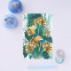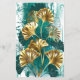 Branch with jewellery, gold and green leaves of Ginko biloba on light, painted green background. Ginko biloba
