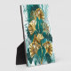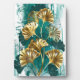 Branch with jewellery, gold and green leaves of Ginko biloba on light, painted green background. Ginko biloba