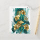 Branch with jewellery, gold and green leaves of Ginko biloba on light, painted green background. Ginko biloba