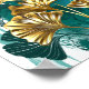 Branch with jewellery, gold and green leaves of Ginko biloba on light, painted green background. Ginko biloba