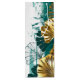 Branch with jewellery, gold and green leaves of Ginko biloba on light, painted green background. Ginko biloba