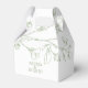 This gorgeous sage green flowers spring wedding favour box showcases a graceful floral design, with a blooming branch adorned with delicate blossoms and leaves. The monochrome colour scheme adds a touch of sophistication to the overall aesthetic. What makes it even more special is the option to personalise it with the names of the couple and their table number, making it a truly unique and memorable keepsake for guests to cherish.