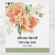 This wedding wine label is adorned with a beautiful branch of peach roses and sage green leaves, giving it a floral and romantic touch. The couple's names are prominently displayed in a sophisticated and elegant font, adding a personalised and intimate feel to the label. Additionally, a heartfelt 'Thank You' message is seamlessly integrated into the design, making it a thoughtful and meaningful detail for the guests.