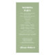 Branch with peach rose flowers sage wedding BUDGET wedding ceremony and party program. This affordable wedding program card showcases a beautiful design with a branch featuring delicate peach roses and leaves in the upper left corner. The left border is a soothing sage green colour, adding a touch of elegance to the overall look. The couple's names are highlighted in a bold font, accompanied by the headings 'THE CEREMONY' and 'PARTY' for easy navigation. The back of the card is kept simple with a solid sage green colour, creating a cohesive and stylish finish to the program. Some assets of the cover image are from Freepik.com