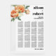 Branch with peach roses wedding acrylic seating chart. Featuring a sleek white frame, the sign is adorned with a delicate branch embellished with soft peach rose flowers and lush sage green leaves in the top left corner. The transparent left edge adds a modern touch, while the striking typography beckons attendees to joyfully partake in celebrating your special union.