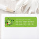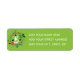 A simple design features a green background with a floral wreath of berries, leaves, and branches with an area to add your monogram initial and your name, street address, city, state, and zip code!