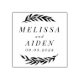 Textural and leafy branches frame two names and a date making this ink stamp a modern monogram to place on welcome bags, favours and more.
