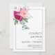 This couple's shower invitation features elegant eucalyptus branches decorated with beautiful pink roses. The refined floral arrangement highlights soft sage green leaves and pink blooms, creatively placed in the top left corner. The text is presented in chic typography, enhancing the overall appearance, while a fine black border frames the design, giving this delightful invitation a classy touch.