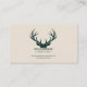 A business card with an elegant silhouette of deep forest green branching deer antlers against a cream-colored background, in an aesthetic, minimalist, and nature-inspired designed. It could be used for company such as taxidermist, hunter, wildlife & outdoor-related activities, travel agency, antiques stores, insurance, collector shop, etc.