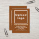 Brown portrait business card that you can customise by uploading your business logo, typing your business name, address, phone number, e-mail and website or social media page. Business card that you can use as a marketing material to advertise your business or to promote your brand to customers or clients. Customisable business card that you can use to build brand name awareness. Please check the appearance of the front and back sides after uploading logo and typing text. If the appearance is pleasing to you, you can place your order now. If you need to resize or reposition the logo and text, please adjust in the design tool. You can also change the background colour, font colour and font style in the design tool.