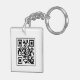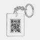 A double-sided white acrylic keychain designed for businesses to brand with their own custom logo, business name, location, website, and phone number on the front, plus a scannable QR code on the reverse. The clean white background and durable acrylic construction make this an effective promotional giveaway for trade shows, customer loyalty programs, employee gifts, or branded marketing kits. All text fields, the logo, and the QR code are fully customizable.