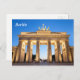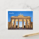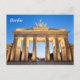 A photograph of the Brandenburg Gate in Berlin taken at blue hour on a beautiful sunny evening is featured on this postcard.