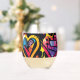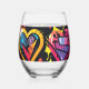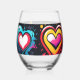 Brash punk hearts in vibrant colors stemless wine glass