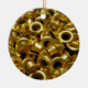 A collection of brass metal grommets like you might use to make a belt.