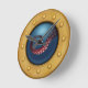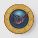 This nautical themed clock looks like the porthole on an old ship or submarine with a view of a creepy sea monster in the ocean beyond. This item is great for nautical themed rooms, kids' rooms, and those who love steampunk and maritime literature or films.
