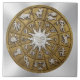 Square ceramic tile with an image of a brass and silver astrology wheel on gleaming silver. See matching candy jar, mug, paper plate and coasters. See the entire Gemstones & Medallions Tile collection in the HOME section.