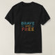 This t-shirt design boldly proclaims "Brave and Free" in a vibrant multicolor scheme. The words are likely separated, with each one using a different eye-catching colour. The font is likely bold and clear, allowing the message to be easily read. The overall feel is energetic and inspiring, perfect for someone who embraces a courageous and independent spirit. Very stunning and beautiful design.