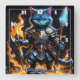 Brave Feline Knight in Fiery Fantasy Setting Square Wall Clock
