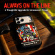 A dedicated firefighter, clad in protective gear and a helmet, prepares for action in front of a backdrop featuring the American flag