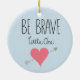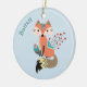 This is a cute ornament for a child, for Christmas, birthday, or any time. The front features an adorable red fox with a tribal markings. He sits holding a feather, with a red berry bush behind him. Your child's name is at the upper left. The back of the ornament has the stylised text "Be Brave Little One". Beneath it is a pink heart with an arrow through it.