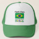 The Brazilian Flag with the word BRAZIL below, in the colors of the flag. Add your name in the space provided for a personalized touch to the trucker hat. If you need a creative, customized gift just add someone else's name.