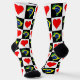 Fun patriotic socks for proud Brazilian people and anybody who loves the nation of Brazil. Featuring a unique black and white chequered pattern with red hearts on the white squares, and the black squares filled in with a map of Brazil filled in with the Brazilian national flag. These are a great way to show your pride for your favourite country, and make a fun gift idea for friends and family who love Brazil.
