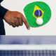 Brazil oil painting. Brazilian emblem drawing canvas. A painted picture of a country's flag.