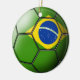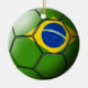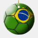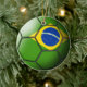 Flag of Brazil embossed across a soccer ball on a two-sided ceramic ornament.