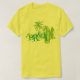 Palm trees, people and surf boards dominate this design, focusing on Brazil. Different shades of green.