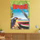 Brazilian Beach Post Card travel print. A brazil travel poster with a kingfisher bird on a beach.