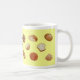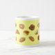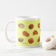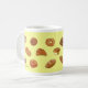 Mug with cheerful bread drawing design. Light yellow background. This coffee mug with 17 different original bread and pastry drawings will brighten your morning and afternoon. Makes a great gift for yourself or others for any occasion.