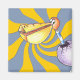 The design on this Square Magnet is a cartoon bird with an unusual beak, an orange head and blue and white stripes on it's neck. He's breaking free of his purple egg shell. Derwint coloured pencil illustration. Click the customise button to add text and personalise. Other than the blue swirl, there are 7 other coloured background swirls to choose from. The yellow swirl can be changed to any colour by using the background colour tool.