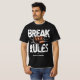 Make a bold statement with this Break Rules T-shirt design that embodies rebellion, originality, and fearless creativity. Set against a stark black background, the powerful phrase BREAK RULES stands out in large cracked white letters. The "R" in RULES is replaced by a realistic brown human hand smashing through the text, symbolising strength, defiance, and breaking barriers. Beneath the main design, the phrase NOTHING IS ORIGINAL adds a thought-provoking twist, capturing the spirit of innovation and challenging convention. With its minimalist yet impactful style, this tee is perfect for artists, rebels, creators, and free thinkers who live by their own rules.