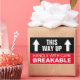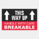 Breakable Handle with care This way up moving and shipping stickers. Custom black and red caution labels for moving boxes, mailing fragile packages and more. Double arrow symbol. Customisable colours. Handy for careful relocation, frail transport, office, warehouse, dropshipping, business, company, school, delivery service, webshop, parcel service, transportation company, delicate glass work and more. Modern bold typography template