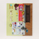 Embark on a delightful puzzle adventure with this adorable jigsaw puzzle! The image showcases a cute cartoon woman in her kitchen, accompanied by her curious cat. As she prepares a scrumptious breakfast with pancakes, syrup, coffee, fruit, and bread, her feline friend eagerly explores the open refrigerator. This puzzle guarantees hours of fun and can be proudly displayed as a wall decoration once finished. It's an ideal gift for cat lovers, little kids, and anyone who appreciates the joy of cooking!