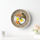 Breakfast food kitchen wall clocks designed with a graphic of eggs, green beans, tomatoes, and makes a great wall clock for any dining area or kitchen as a housewarming gift or home decor accessory.