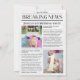 Make any first birthday a headline-worthy event with this customisable breaking news card. Featuring a creative newspaper-style design, this card highlights milestone moments and precious photos from the big day. Perfect as an announcement or thank-you card, it offers a unique way to share the joy of a first birthday celebration with loved ones. Capture the magic, laughter, and memories in a keepsake that will be treasured for years to come.