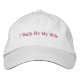 Show your support with this Breast Cancer Awareness Cap shown in white with pink embroidered text: I Walk for my Wife.