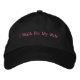 Show your support with this Breast Cancer Awareness Cap shown in black with pink embroidered text: I Walk for my Wife.