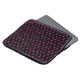 The sleeve is made of nice feeling material and seems very durable. I'm not sure how easy it'll be to clean, but the construction seems sound and the fabric is quick thick. I also like the double zipper. The printing is lovely and appears durable. The white on black contrast is nice, and the design very elegant.