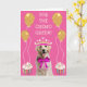 Unique and fun card for a breast cancer patient featuring a cute doggie, balloons and cupcakes.