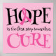 Hope is the first step towards a cure for Breast Cancer. Beautiful pink ribbon awareness and support poster.