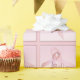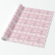 A graphic illustration of a pink breast cancer awareness ribbon design on gift wrap.