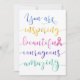 Remind someone fighting breast cancer to remember who she is with this unique calligraphy style typography design, featuring this message in colourful watercolor style: "You are inspiring, beautiful, courageous, amazing." The "L" in the word beautiful is a pink breast cancer ribbon.