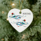 Two matched breaststroke swimmers on a heart ornament. This is an abstract line design with colour in the shapes. A fun gift for that breaststroke swimmer you know and love! Art by D. Milan Brudvig.