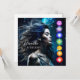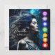 Peaceful ai art depicting a beautiful woman with hair blowing in the wind and a pretty blue celestial blue ethereal background. Quote, "Breathe and Release." Pretty illuminated chakras spiritual art.