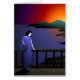Woman and seascape sunset. Done in a style that is heavily influenced by Japanese and Chinese sumi-e ink painting.