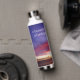 This Water Bottle features an amazing sunset by the sea. Wonderful cloudy evening sky in lavender, pink, yellow. Beautiful quote "A beautiful life is a collection of unforgettable moments". Custom gift for family, friends and more. Originalphoto by Marions Artwork.