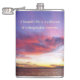 Well made flask, a little better than I had expected. Flask came in clear plastic box which gave it a nice presentation when I took it out of the zazzle packaging. Image is not printed on flask but on sticker. Don't know how this will hold up I haven't used it yet. This would make a Great gift! I plan to purchase more for friends! Cheers. I thought a little brighter than computer. Very crisp, writing wasn't