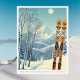 Hello from the snowy mountains of Breckenridge, Colorado, USA! We hope you're having a wonderful ski vacation. This postcard features a gorgeous blue-grey mountain landscape with retro ski boards in an orange tribal pattern.
